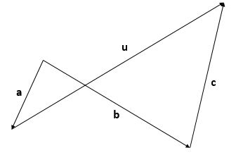The vector u can be expressed in terms of vectors a, b and c as