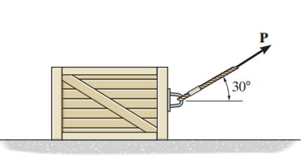 Calculate the velocity of the 50-kg crate at s when pulled by the force N as shown below. The coefficient of kinetic friction between the crate and the ground is . Assume the crate starts from the rest at s.