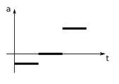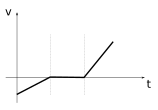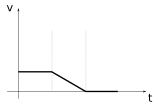 Lequel de ces graphes représentant l'accélération en fonction du temps correspond à l’évolution de la vitesse en fonction du temps représentée ci-dessous ?