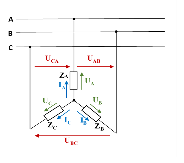 Mi az összefüggés a csillag kapcsolású háromfázisú fogyasztó vonali és fázismennyiségei között?