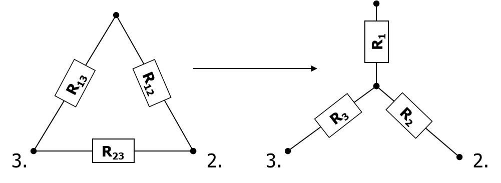 Válassza ki a helyes megoldást! Delta-csillag átalakítás esetén R1 ellenállás kiszámításának képlete: