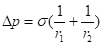 Які вирази визначають надлишковий тиск під викривленою поверхнею рідини (формула Лапласа)?