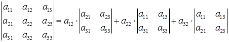Визначник по методу розкладання за ІІ-м стовпцем буде дорівнювати: