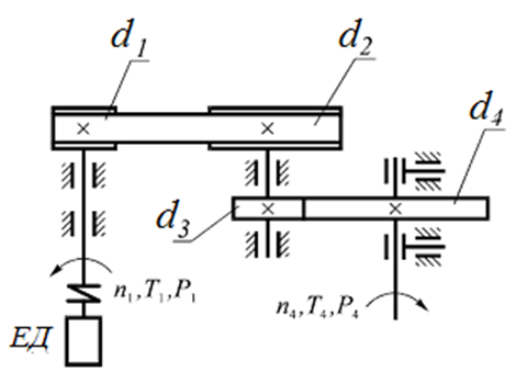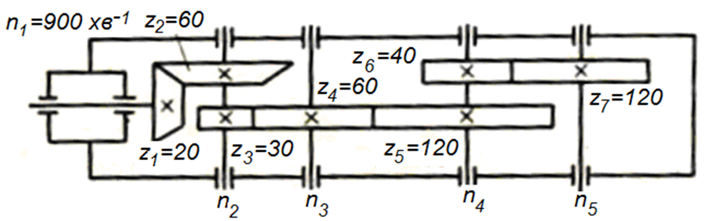 За заданими умовами схеми визначити частоту обертання на вихідними валу n