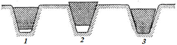 В якому перетині правильно показано положення клинового ременя в струмку шківа?