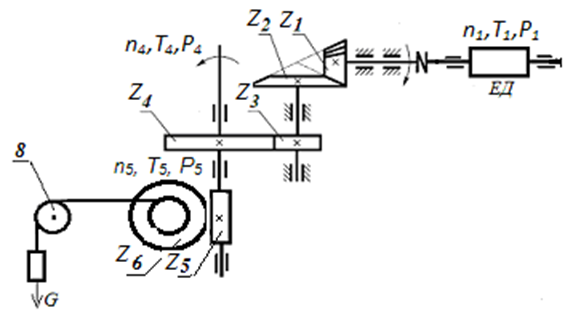 Який крутний момент Т1 повинен мати електричний двигун, щоб момент на вихідному валу становив 16 кН·м, якщо