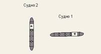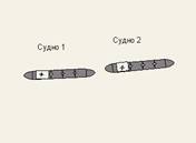 Який маневр буде найбільш ефективний для ліквідації ситуації неминучого зближення суден під кутом близьким до 180о судну 1?