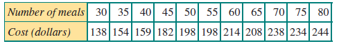 The cost of preparing meals in a school canteen is linearly related to the number ofmeals prepared, as shown in the table.