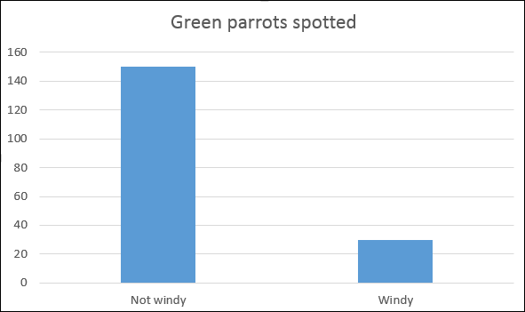 When walking home on a windy day Egon noticed three green parrots fly overhead. He devised the hypothesis:More green parrots will be spotted on windy days than days with no wind.