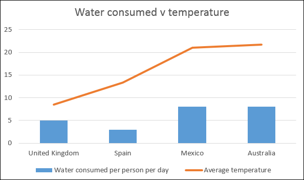 People in countries that have a higher average temperature always drink more water (per person).