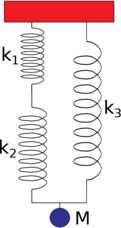 [**] La raideur équivalente du système de ressorts montré dans la figure dessous s’écrit :