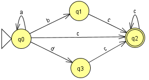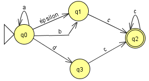 El siguiente grafo representa un Autómata Finito Determinista con ambigüedad.