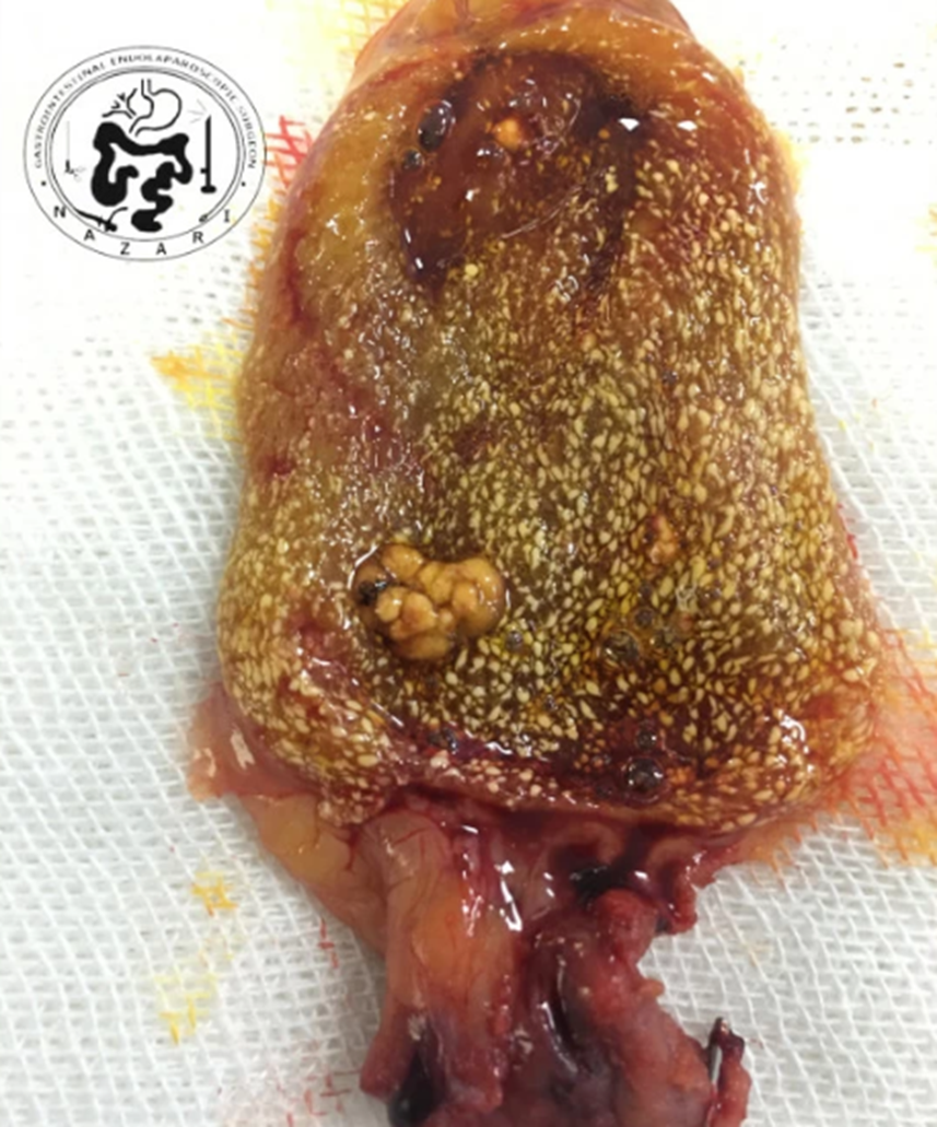 De la lesión con características puntiformes amarillentas en vesícula biliar se puede sugerir: