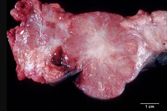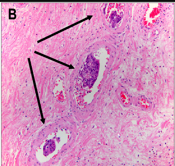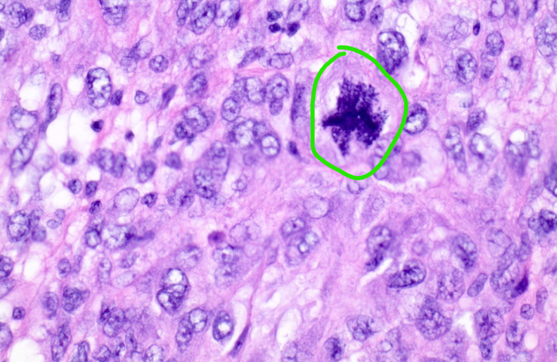 A continuación se le presenta una imagen microscópica de un leiomiosarcoma. La microfotografía está tomada a mayor a aumento (40x). ¿Qué delimita el circulo verde?