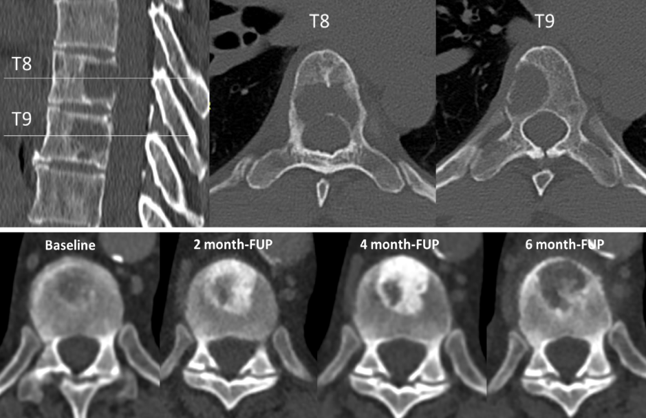 Paciente masculino de 70 años con adenocarcinoma de próstata. En biopsia el patólogo reportó diseminación linfática, hematógena y perineural. 3 semanas después el paciente presentó hipercalcemia. Usted realiza estudios de imagen y observa lesiones en las siguiente estructuras.