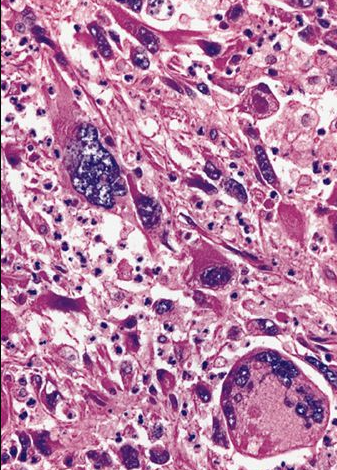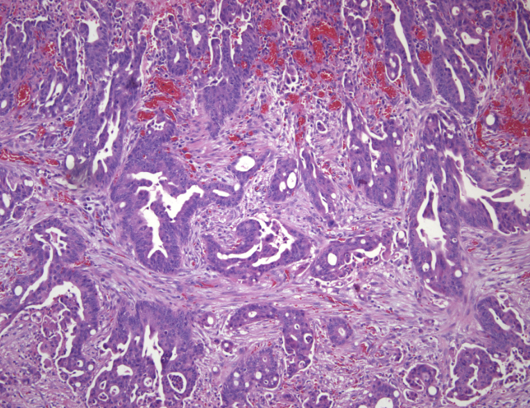Se realizó una biopsia de la neoplasia y se observan los siguientes hallazgos microscópicos.