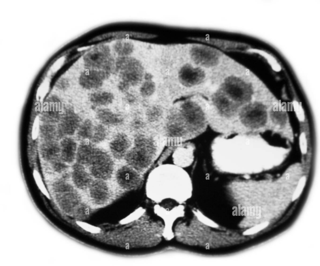 También se realizaron estudios de imagen a nivel de la cavidad torácica y abdominal y se observaron múltiples lesiones hepáticas y pulmonares intraparenquimatosas.