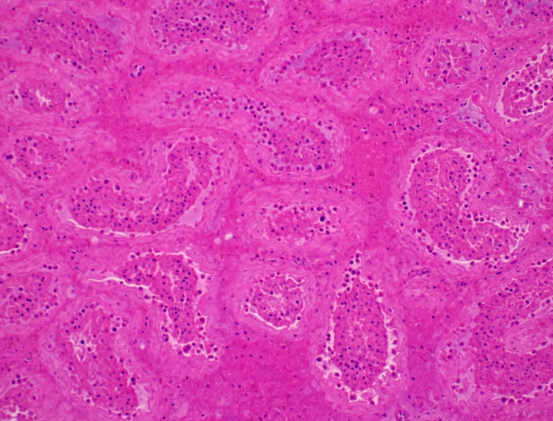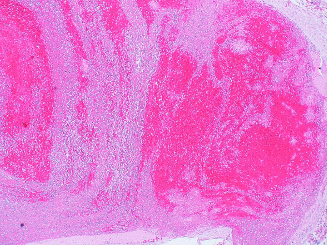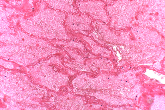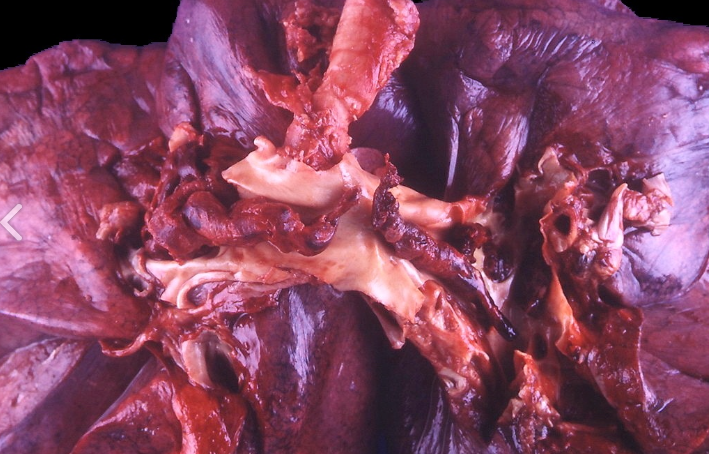 Usted es el patólogo de la morgue del hospital local. a continuación le toca realizar la autopsia de un paciente con antecedente de trombosis venosa profunda. Usted observa los siguientes hallazgos: