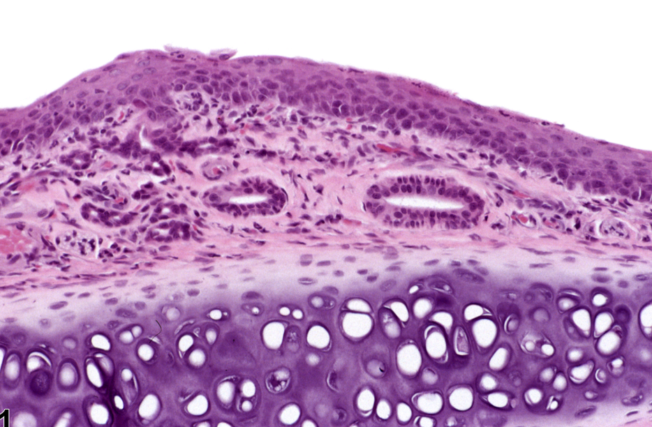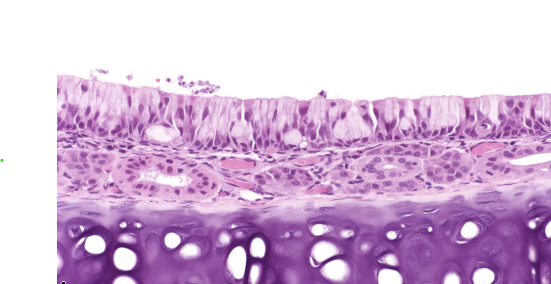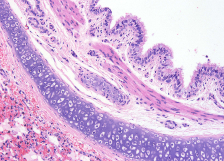 A continuación se le presenta una imagen histológica del bronquio. ¿Cómo se observaría si este sufriera metaplasia escamosa? Basándose en la histología, elija la imagen que usted considere que tenga los cambios morfológicos de la adaptación mencionada anteriormente.