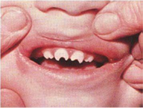 En la siguiente imagen se pueden apreciar los dientes de Hutchinson. Con qué patología se asocian estas alteraciones dentales: