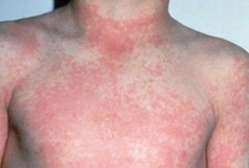 Se relaciona con la presencia de toxinas pirógenas. Se inicia en el tronco pero se puede extender a las extremidades. Es una complicación de una faringitis. ¿Cuál es el posible diagnóstico?