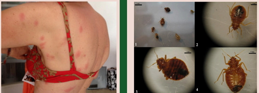Mujer de 50 años que recolectó insectos que encontró en un apartamento antiguo donde empezó a vivir. Al examen físico presentó dermatosis diseminada en tronco y extremidades superiores.