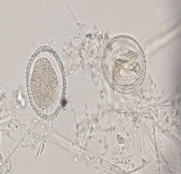 Se encontraron estos huevos (80 um) en un arenero de gato. Si el humano se infecta por este parásito, cuál es el nombre de la enfermedad que le puede producir?