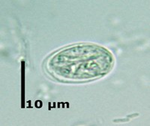 Muestra de heces, de un niño que acude a una guardería de Kansas, presentando periodos de diarrea. Lo encontrado es elipsoidal y mide aprox. 10 micras de largo por 7-8 micras de ancho. ¿Qué forma evolutiva y cuántos núcleos posee cuando es maduro?
