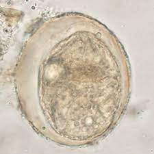 Identifique este huevo que fue excretado en heces y mide 80 um de largo X 60 um de ancho: