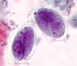 Identifique a este huevo, que mide aproximadamente 140um de largo por 70 micras de ancho y son excretados en las heces: