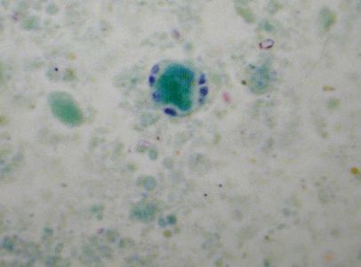 Huevo que mide 70 um de largo X 60 um de ancho, encontrado en una muestra obtenida por Scotch tape: