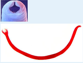 Identifique lo siguiente: Extremo anterior incurvado, Con dos curvas muy características Mide de 7-9m (sexo y nombre del parásito)