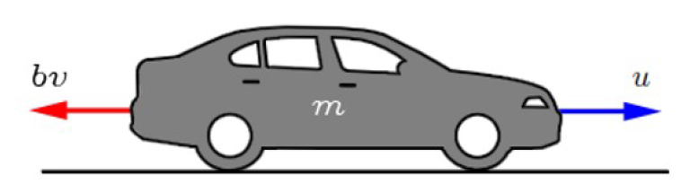 Quando está inicialmente em repouso e lhe é aplicada uma força constante de 1293N, o veículo representado na figura tem, em regime estacionário, uma velocidade constante de 86 km/h.
