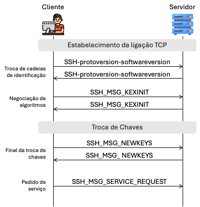 No estabelecimento de uma ligação SSH, o cliente envia a mensagem SSH_MSG_SERVICE_REQUEST para solicitar algum serviço ao servidor.