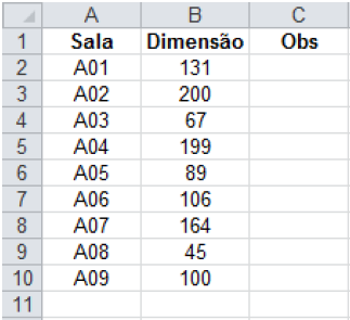 Faça uma sub-rotina chamada assinala(), que escreva um X na coluna Obs, quando a Dimensão estiver entre os valores de 60 a 100.