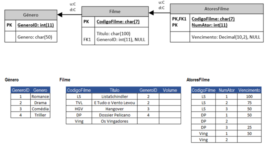 AtoresFilme (CodigoFilme, NumAtor, Vencimento)