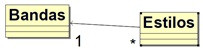 Pretende-se guardar os dados que permitam fazer listagens das bandas musicais pelo seu estilo de música principal. O diagrama de classes abaixo possibilita que uma banda tenha vários estilos (p.f. não considere os atributos, que existem, mas não estão visíveis abaixo).