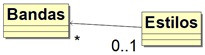 Pretende-se guardar os dados que permitam fazer listagens das bandas musicais pelo seu estilo de música principal. Com o diagrama de classes abaixo, é possível inserir uma banda e só posteriormente associá-la a um estilo de música (p.f. não considere os atributos, que existem, mas não estão visíveis abaixo).