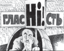 Коли в Українській РСР започатковано політику, на ідеологічній складовій якої акцентує увагу зображена карикатура?