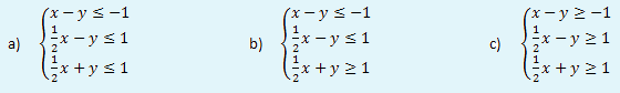 Dane są układy nierówności oraz ich rozwiązania graficzne. Dopasuj rozwiązanie do właściwego układu nierówności.