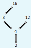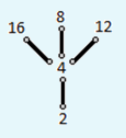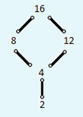 Dany jest zbiór . Wprowadźmy w nim relację podzielności , („ jest podzielne przez ”). Który z niżej przedstawionych diagramów ją reprezentuje?