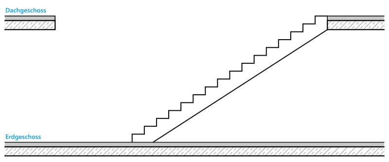 Folgende Treppe eines 2 geschossigen Einfamilienhauses soll im Ergeschossgrundriss (M 1:100) dargestellt werden. Welche der Grundrissdarstellungen ist korrekt?