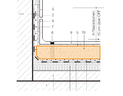 Sie sehen den Fußboden-Eckanschluss eines Nassraums.Welches Bauteil ist hier (orange) hervorgehoben?