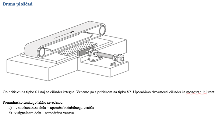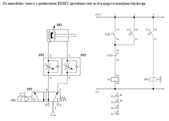 POZOR: če je zahteva, naj uporabimo monostabilni ventil, krmilimo pa ga z dvema signaloma (npr. tipka Start in končno stikalo), moramo uporabiti samodržno vezavo!