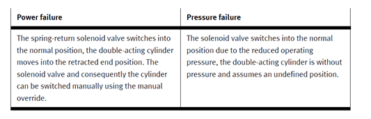 Monostabilni ventil, bistabilni cilinder Izpad napetosti | Monostabilni ventil, bistabilni cilinder Izpad tlaka |