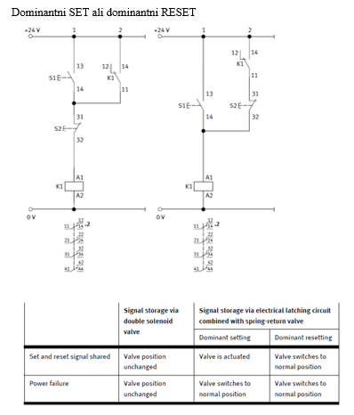 | Bistabilni ventil | Monostabilni ventil, dominantni SET | Monostabilni ventil, dominantni RESET |
