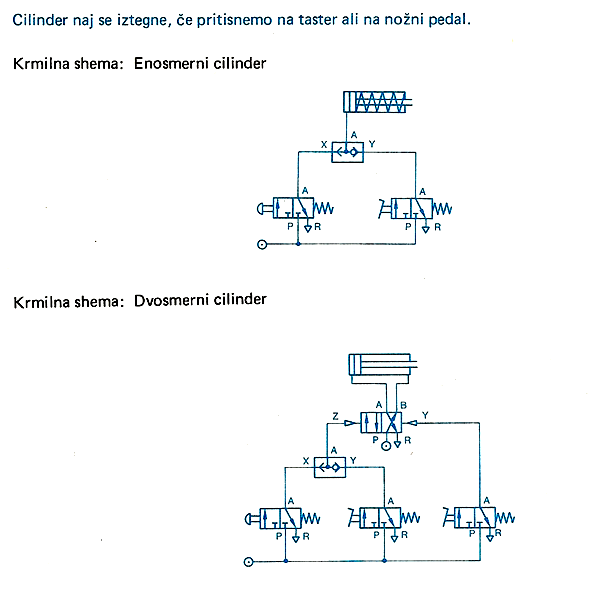 a) Prekopirajte spodnji tabeli v prostor za rešitve in dopolnite, kaj se zgodi z ventilom in s cilindrom.