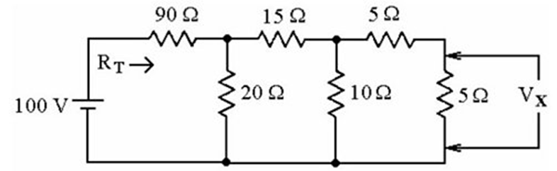 Calculate the Voltage Vx across the 5 ohm resistor shown in the figure above.