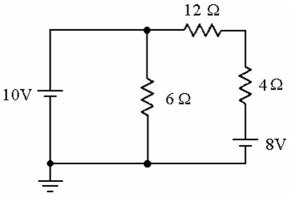 See Figure. Using the superposition theorem, what is the portion of the current through the 6 Ω resistor caused by the 10 V battery?