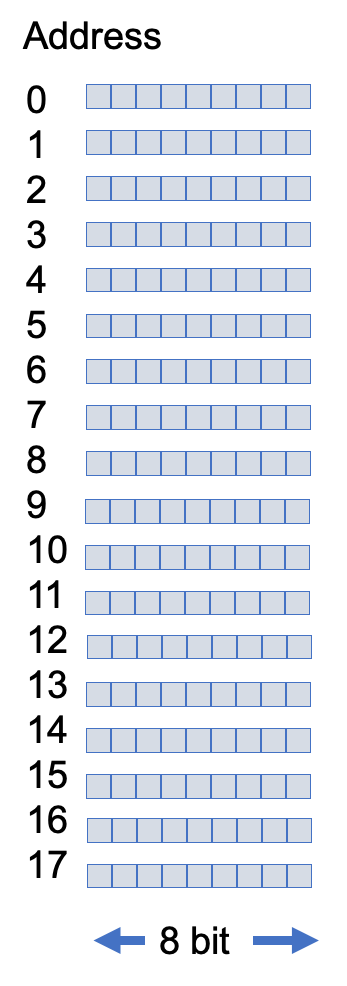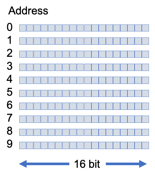 Memory can be organised in many different ways, with the length of the word / cell / bit width determining how bits are grouped.